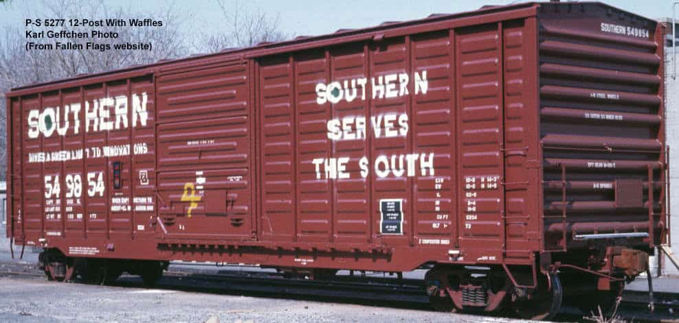 Pullman-Standard was a major supplier for Southern Railway and its subsidiaries. Five styles of the 5277 cubic foot capacity boxcars were produced in the 1970s. Each is shown below plus a pic of NS 2545.