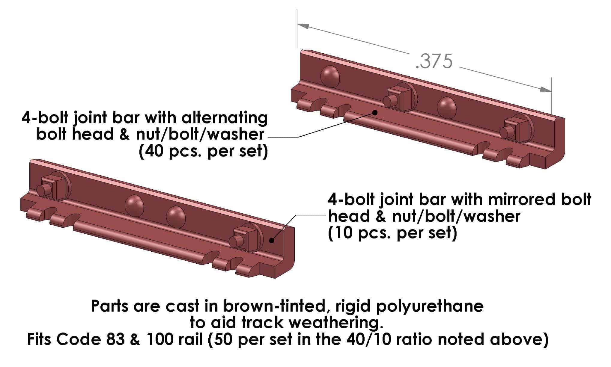 All parts cast in brown-tinted, rigid polyurethane to aid with track weathering.