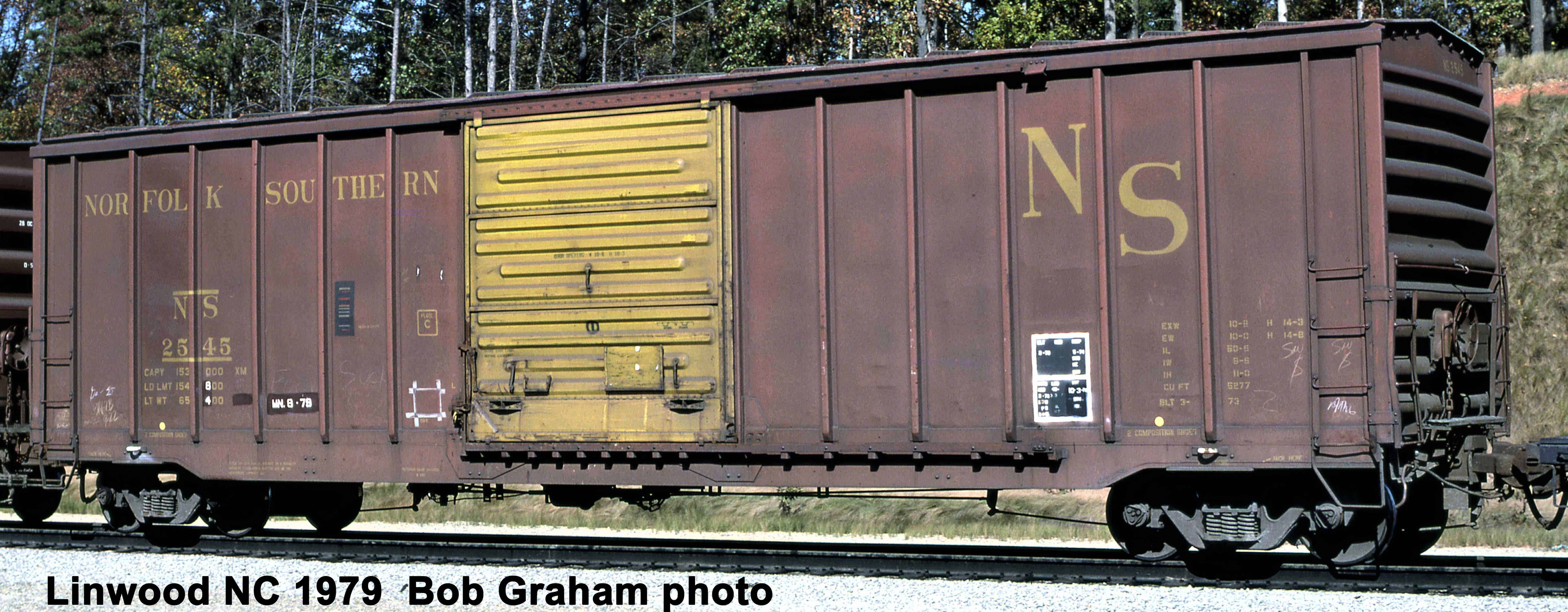 Pullman-Standard was a major supplier for Southern Railway and its subsidiaries. Five styles of the 5277 cubic foot capacity boxcars were produced in the 1970s. Each is shown below plus a pic of NS 2545 ... the last cars to be delivered in that scheme prior to the 1974 merger into Southern.